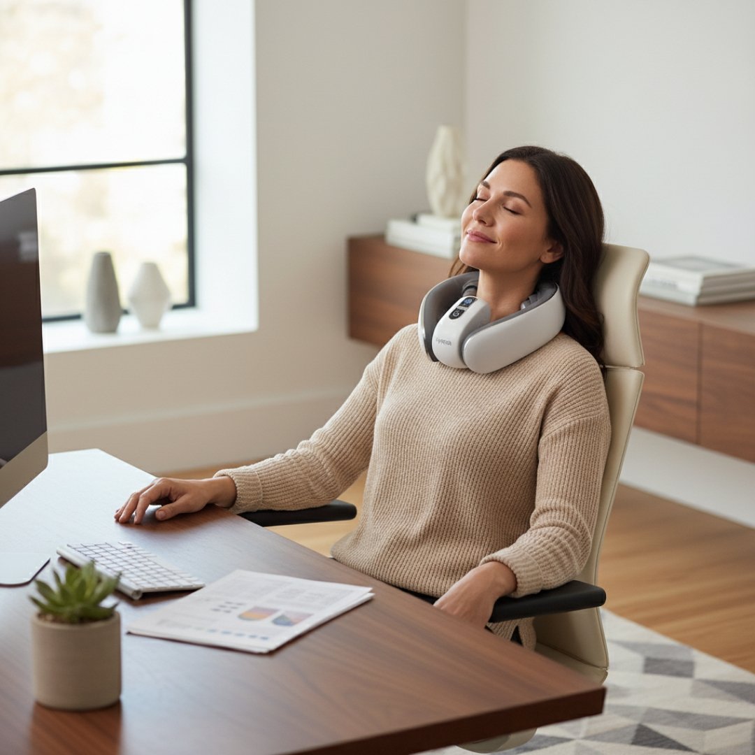 Discover ultimate relaxation with the Vyronza Aura Neck Massager. Engineered with advanced shiatsu technology and soothing heat, this modern device targets deep-seated muscle tension to provide instant relief. Its sleek, cordless design allows you to unwind and rejuvenate anywhere, anytime.
